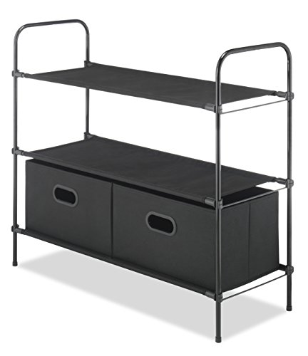 Whitmor Closet Organizer – includes 3 Durable Fabric Shelves & 2 Removeable Storage Boxes - Multi-purpose storage for Home or Office – Black Color - 32.7 x 12.4 x 2.4 inches