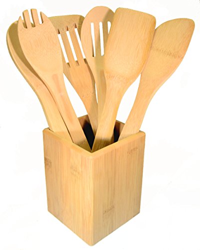 7-piece Bamboo Kitchen Cooking Utensils Set ( 6 Utensils Plus Holder ) in a Gift Box
