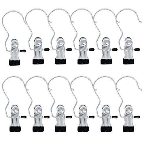 Huji Laundry Hanging Hooks Clothes Boots Chrome Pins Clips Hangers (Set of Twelve, Hanging Clips)