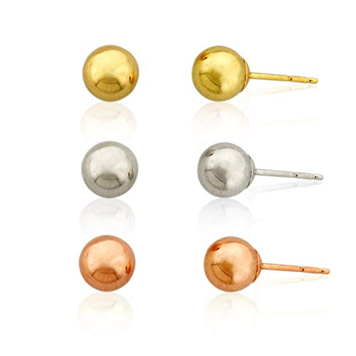 3-Pair 10K Yellow, White, and Rose Gold Three Color Polished Ball Stud Earrings Set