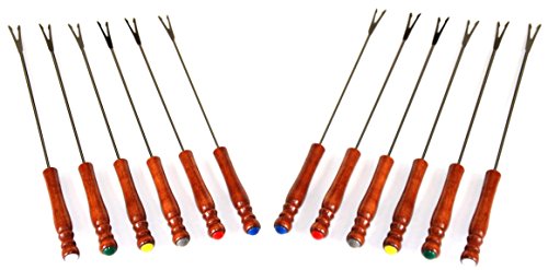 Premium Quality 12pc ALAZCO Color Coded 9.5" Stainless Steel Fondue Forks - Fruit Chocolate Fountain Marshmallow Shrimp BBQ Meat - Made in TAIWAN