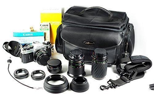 Canon AE-1 Program Camera, 50mm f/1.8, Albinar ADG 28-80mm, Craig Optics 80-200mm, Canon FD T Mount Adapters, C/FD 2x Teleconverter, Manual, Bag