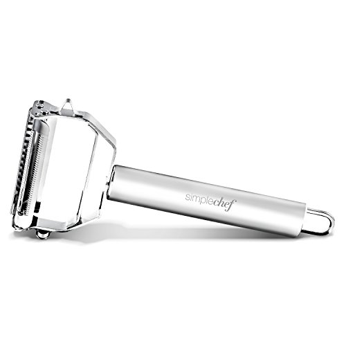 Simple Chef STAINLESS STEEL Julienne Peeler with Ultra Sharp Blade Technology - Perfect for Peeling and Shredding Delicious Fruits & Vegetables