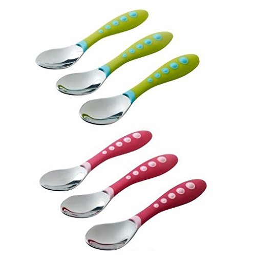 Gerber Stainless Steel Tip Kiddy Cutlery Spoons, 6 Pack, Pink/Green