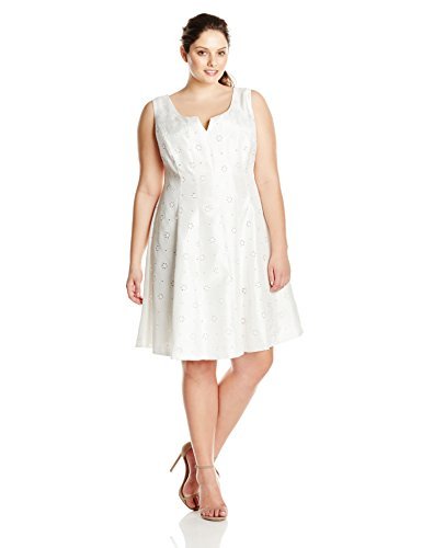 Taylor Dresses Women's Size Fit and Flare Shantung Eyelet Plus, White, 14W