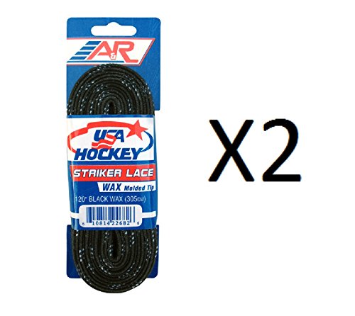 A&R New 2 Pair USA Hockey Striker Waxed Molded Tip Skate Laces Black 72"-132"
