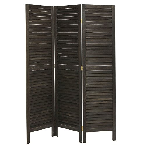 MyGift Rustic Dark Brown Wood Louvered Panels Freestanding 3 Partition Folding Room Divider/Privacy Screen