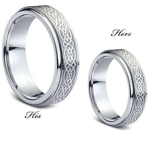 His & Hers Tungsten Ring Matching Band Set 7MM Celtic Knot Brushed Finish - Tungsten Carbide Wedding Band - Promise Ring-EngaSimulated Gement Ring-Designer Band