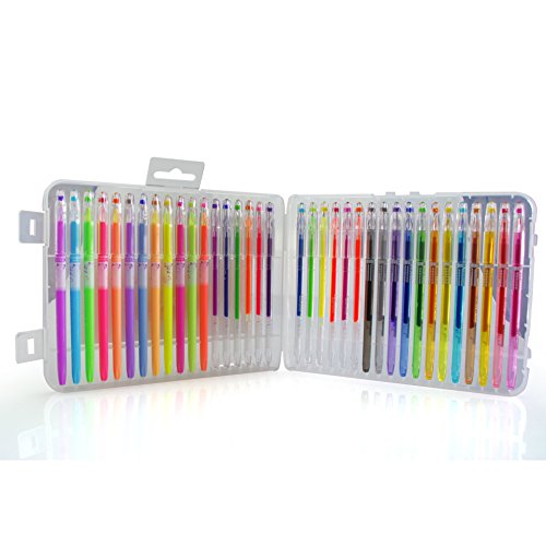 BFU Multi Colored Gel Pen Set with Case, Perfect for Drawing, Party Invites, Coloring, Writing and More, 0.8 - 1.0 mm Fine Point, Set of 36 (12 Glitter Pens, 12 Neon Pens and 12 Pastel Pens)