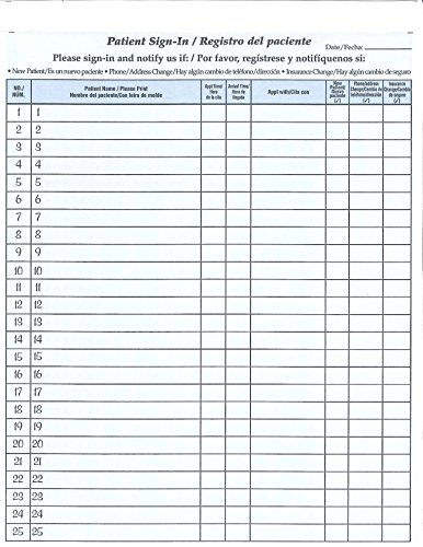 Confidential Patients Sign In Sheets, 8-1/2" X 11" (Blue) Bilingual - Carbonless Form (Lot of 125 Sheets) HIPAA Compliant.