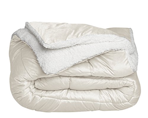 Cathay Home Fashions Reversible Faux Fur and Sherpa 3 Piece Comforter Set, King, Ivory