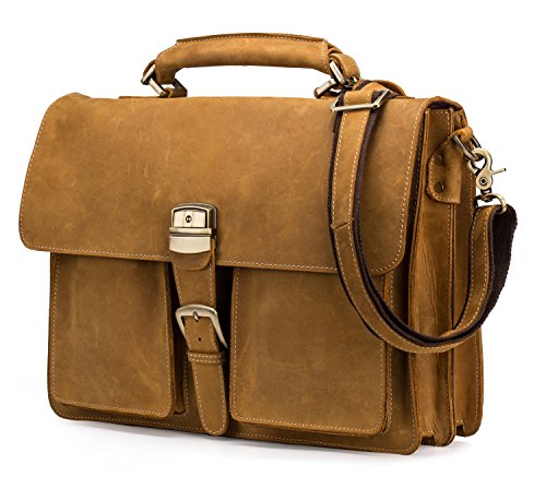 BAIGIO Leather Briefcase Designer Retro Messenger Bag Travel Handbag 15" Laptop Shoulder Tote (Tan Brown)