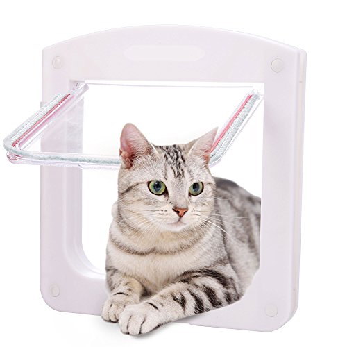 Homdox Plastic 4 Way Locking Lockable Pet Cat Door Small Cat Flap White (Small)
