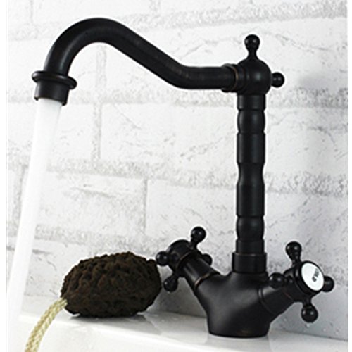 PHASAT Bathroom Kitchen Sink Faucet, Oil-rubbed Finish Solid Brass Cold and Hot Water Mixer Tap Bathtub Faucet, Double Handle, Vintage Style