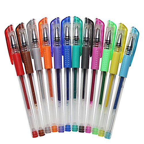 Huhuhero 12 Color Glitter Gel Pens Set - Vibrant Colored Gelpen Ink for Art Crafting Doodling Scrapbooking Drawing Writing and Adult Coloring Books