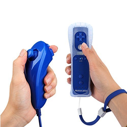 YORKING™ New 2in1 Built in Motion Plus Remote and Nunchuck Controller for Nintendo Wii and Wii U and Mini Wii with Silicon Case Skin(Dark Blue)