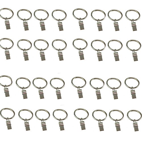 Fantastic Job Silver Metal Curtain Rings with Clips (1 Inch Interior Diameter) (32, Silver)