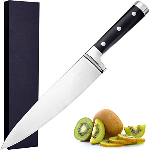 Chef Knife, High-carbon Stainless Steel Blade 8-Inch Kitchen Knife Multipurpose Chefs Knives with Sharp Straight Edge for Chopping, Mincing, Slicing and Dicing (Gray)