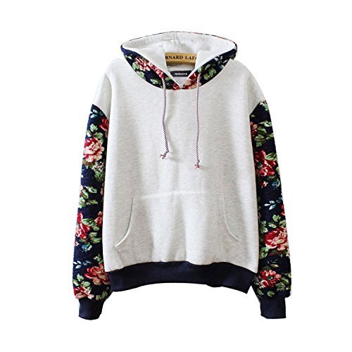 Mebarra Women Thick Warm Floral Printed Long Sleeve Hooded Pullover Sweatshirt