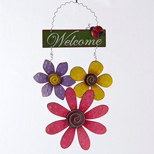 Glitzhome Iron Welcome Flower Wall Hanging Sign With Ladybug