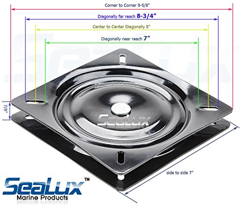 SeaLux Universal Heavy Duty 360 degree 7" to 8-3/4" Seat Swivel Base Mount Plate for Bar Stool, Chair, boat or van pilot seat (Large)