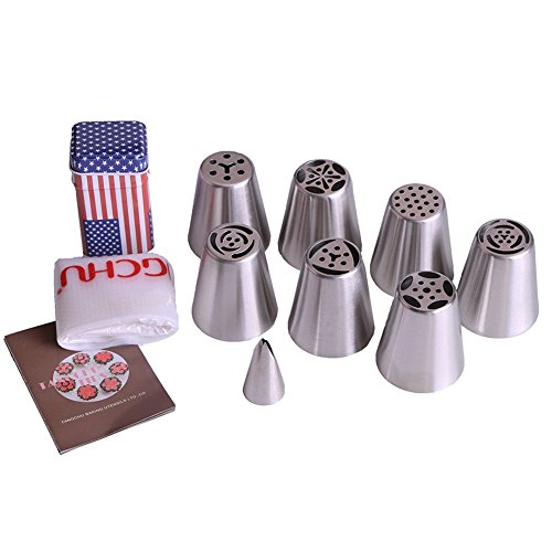 Russian Piping Tips - 12 Piece Cake Baking Supplies - Decorating Set - 7 Icing Nozzles - 5 Pastry Disposable Bags Extra Large Decoration Kit - Tangchu Tips