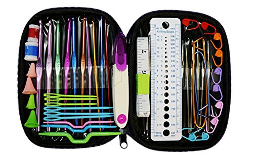 ELINKA Crochet Hooks Mixed Aluminum Handle Knitting Knit Needles Sewing Tools Full Set Knit Gauge Scissors Stitch Holders Weave Yarn Set of 51pcs