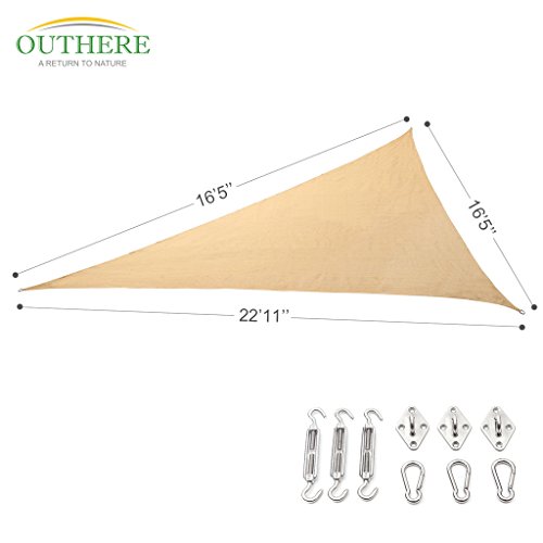 Outhere 16'5"X16'5"X22'11" Sun Shade Sail Right Triangle with Stainless Steel Hardware Kit - Durable Outdoor Canopy UV Shelter for Patio Lawn - Sand Color