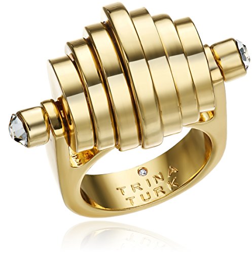 Trina Turk Retro Sport Moveable Disc Gold White Ring, Size 7