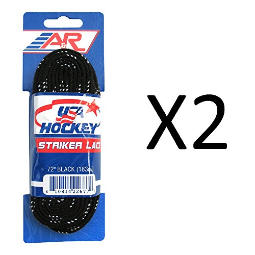 A&R New 2 Pair USA Hockey Striker WAXLESS Molded Tip Skate Laces Black 72"-132"