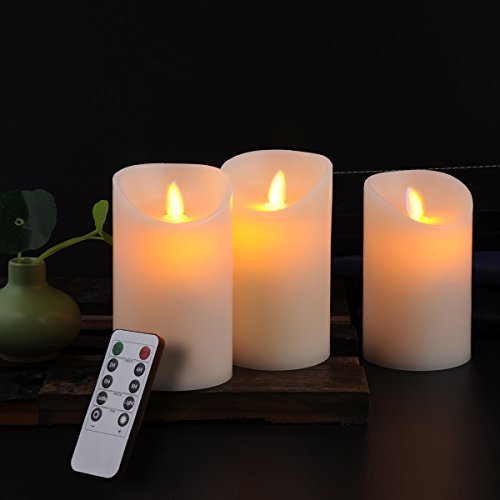 Calm-life Classic Pillar Real Wax Flameless LED Candles 3" X 5" with Timer 10-key Remote Control Feature Ivory Color - Set of 3