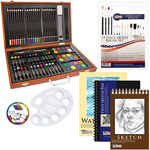 US Art Supply 82 Piece Deluxe Art Creativity Set in Wooden Case with Bonus 20 Additional Pieces - Deluxe Art Set