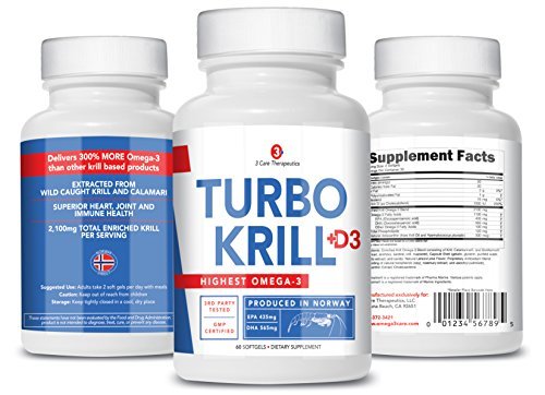 3Care Turbo Krill 2100mg [High Concentrate] Krill Oil Plus 1000 IU Vitamin D Omega 3 Supplement 60 Count Softgels
