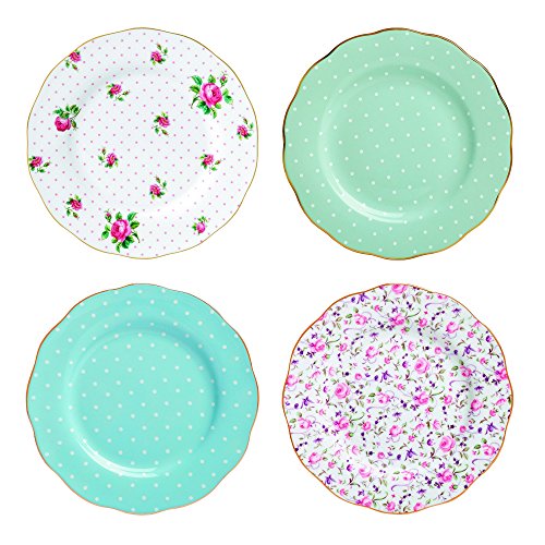 Royal Albert New Country Roses Tea Party Mixed Patterns Accent Plates (Set of 4), 8", Multicolor