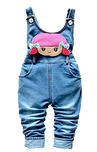 Kidscool Baby Girls Spring Cotton Denim Cute Overalls Soft To Wear Pants