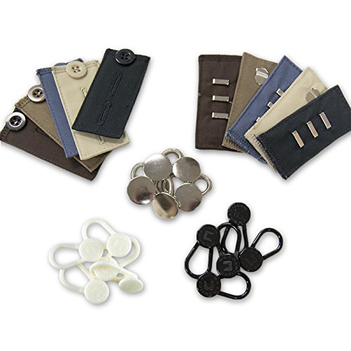 25-pack Waistband Extender Set - 5 x White Button, 5 x Black Button, 5 x Spring Metal Button, 5 x Cotton Hook, 5 x Cotton Button Extenders