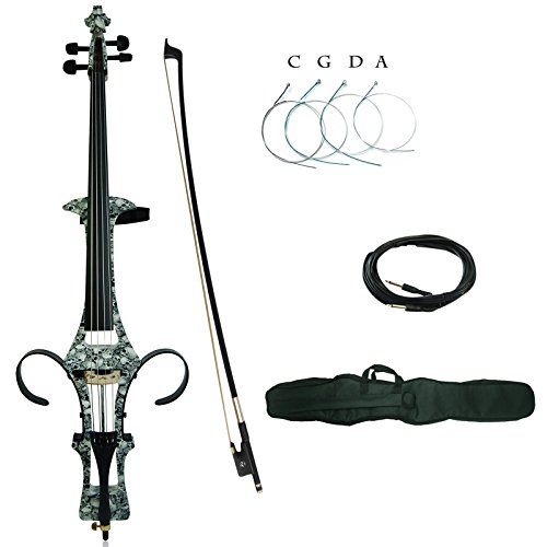 Kinglos 4/4 Black White Skull Colored Solid Wood Electric / Silent Cello Kit with Bag, Bow, Rosin, Aux Cable, Earphone, Extra Set of Strings Full Size (DSDT1312)