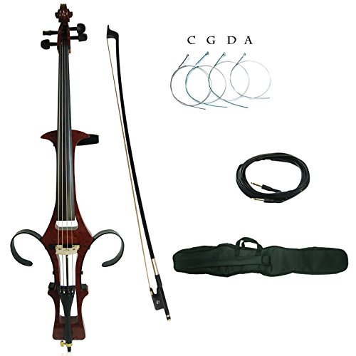 Kinglos 4/4 Brown Colored Solid Wood Electric / Silent Cello Kit with Bag, Bow, Rosin, Aux Cable, Earphone, Extra Set of Strings Full Size (DSDT1601)