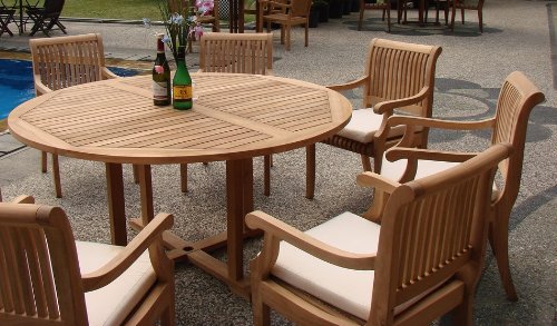 7 Pc Grade-A Teak Wood Dining Set - 60" Round Table And 6 Giva Arm / Captain Chairs #WFDSGV6
