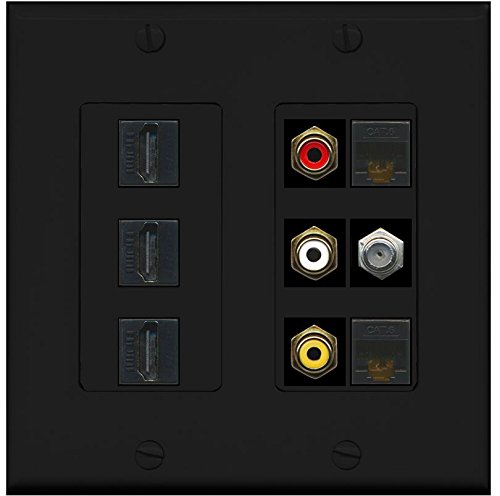 RiteAV - (2 Gang Decorative Composite Video 3 HDMI Coax 2 Cat6 Black Wall Plate Black