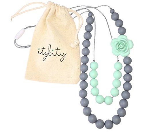 Baby Teething Necklace for Mom, Silicone Teething Beads, BPA Free (Gray/Mint)