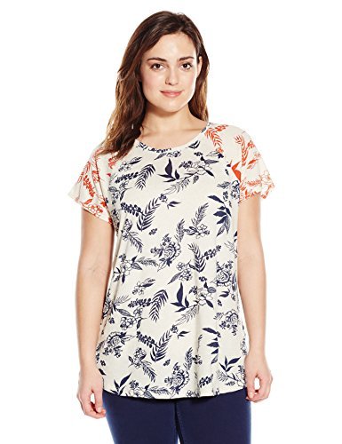Lucky Brand Women's Plus Size Stamped Floral T-Shirt, Natural, 1X