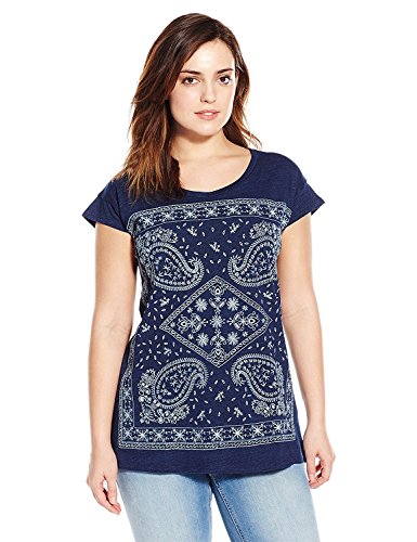 Lucky Brand Women's Plus Size Embroidered Indigo Bandana T-Shirt, 2X