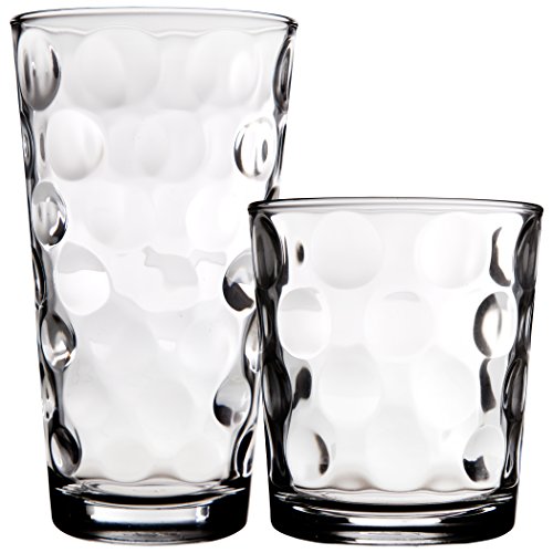 Palais Glassware Cercle Collection; Clear Glass Set with Circle Design (Set of 6-7 Oz Juice Glasses, ASSORTED COLORS - YELLOW/PURPLE/GREEN/RED/ORANGE/BLUE)