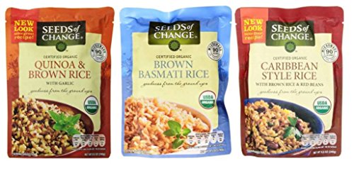 Seeds of Change Organic Heat & Eat Rice Side Dish 3 Flavor Variety Bundle: (1) Quinoa & Brown Rice w/Garlic, (1) Brown Basmati Rice, and (1) Caribbean Style Brown Rice & Red Beans, 8.5 Oz Ea (3 Tot)
