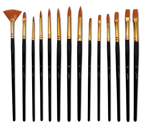 yohino Professional Multipurpose Paint Brushes Set with Fan Brush (13-Piece Set) – Nylon Hair with Chinese Birch Wood Handles Use for Acrylic, Oil, Watercolor