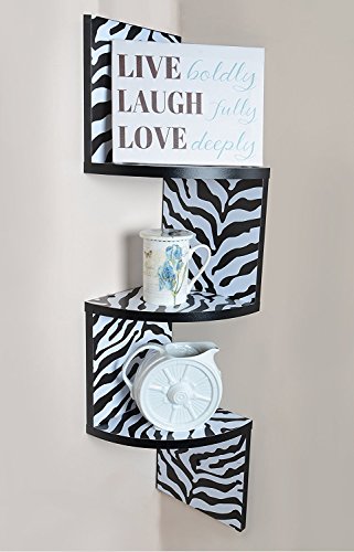 Adorn Home Essentials| Corner Zig Zag Wall Mount Shelves| 3-Tier, Zebra with Black Edging