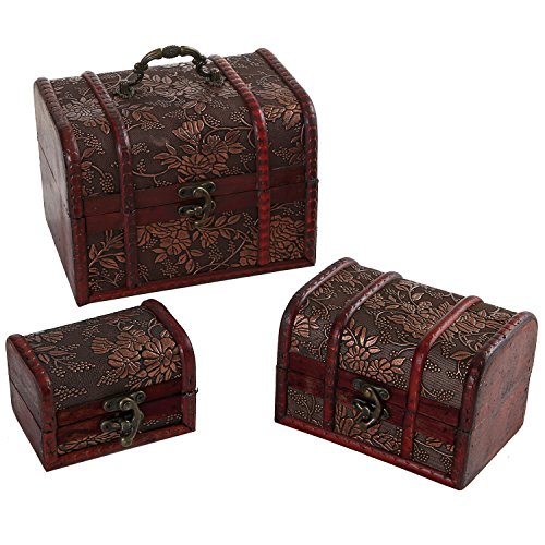 MyGift Set of 3 Antique Style Detailed Wood Nesting Storage Boxes w/Hasp Latch/Small Jewelry Organizer Chests
