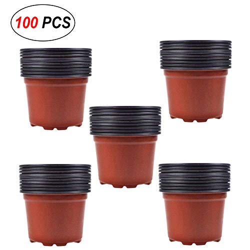 Coolrunner 100 PCS 4 Inch Plastic Flower Seedlings Nursery Pots Plant Container Seed Starting Pots