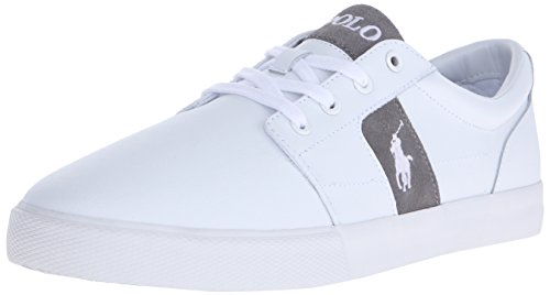 Polo Ralph Lauren Men's HALMORE Leather Fashion Sneaker, White, 11.5 D US